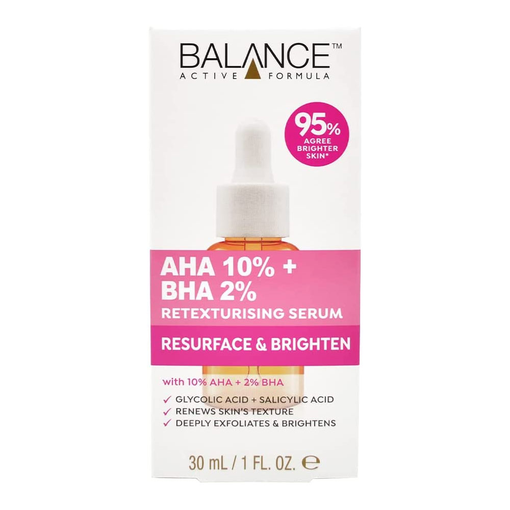 سرم لایه بردار و بازسازی کننده پوست AHA 10% + BHA 2% بالانس BALANCE دارای ترکیبات موثر و کارآمد مانند سالیسیلیک اسید و گلیکولیک اسید بوده که با لایه برداری پوست موجب روشن شدن آن و افزایش فرآیند بازسازی سلولی می شود. این محصول با برخورداری از BHA2% و AHA10% به عمق منافذ پوست نفوذ کرده و آن را پاکسازی می کند و علاوه بر ویژگی ضد آکنه سبب بهبود بافت پوست و رفع جای جوش می گردد. این سرم با بافت سبک به سرعت جذب شده و مناسب انواع پوست می باشد. این محصول در کاهش چین و چروک، جوانسازی و رفع لک های پوست نقش موثر دارد.