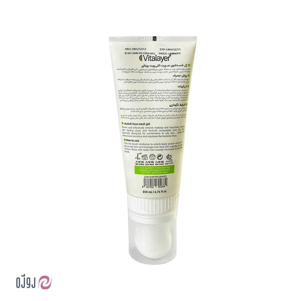 ویژگی های ژل شستشو براش دار پوست چرب و مختلط Activit ویتالیر :