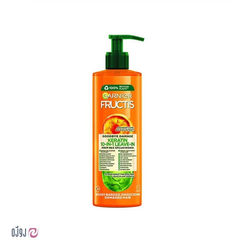 کرم 10 کاره گارنیر حاوی ترکیباتی است که از آسیب دیدن مو بر اثر حرارت خصوصا حرارت حالت دهنده های مو مانند اتو مو و سشوار جلوگیری کرده و مانند یک سپر محافظتی از تارهای مو در برابر آسیب ها و آلودگی های محیطی که روزانه سلامت موی شما به خطر می اندازند دفاع می کند. به لطف ترکیب روغن نارگیل، اسیدهای آمینه، عصاره میوه آمیلا، ویتامین B3 و ویتامین B6 از بسیاری از جنبه های مختلف از موی سالم مراقبت می کند. این ترکیبات بسیار مغذی، موهای آسیب دیده شما را بازسازی می کند و می تواند به جلوگیری از شکنندگی و موخوره کمک کند. موها را به شکل فوری صاف می کند و بلافاصله بعد از استفاده به آنها نرمی و خاصیت ارتجاعی فوق العاده می بخشد تا برای حالت دهی آماده شوند. ضمن اینکه با ایجاد لایه محافظتی روی تارهای مو از آنها در برابر حرارت تا 230 درجه محافظت می کند.